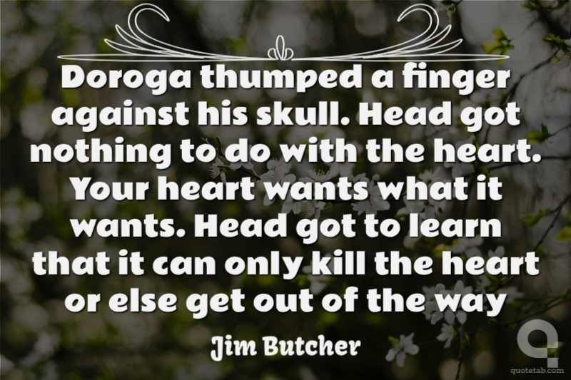 Doroga thumped a finger against his skull. Head got nothing to do with the heart. Your heart wants what it wants. Head got to learn that it can only kill the heart or else get out of the way