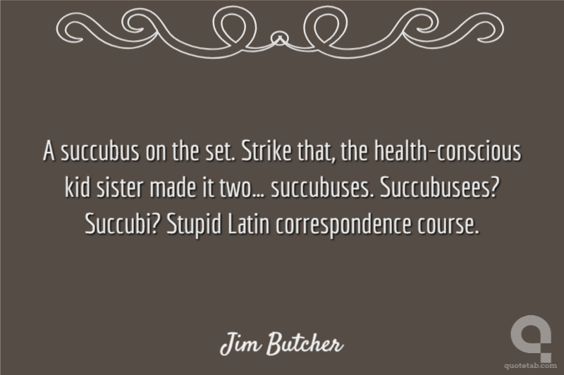 A succubus on the set. Strike that, the health-conscious kid sister made it two… succubuses. Succubusees? Succubi? Stupid Latin correspondence course.