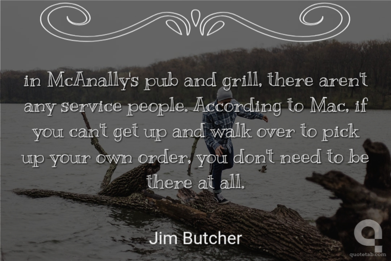 in McAnally's pub and grill, there aren't any service people. According to Mac, if you can't get up and walk over to pick up your own order, you don't need to be there at all.