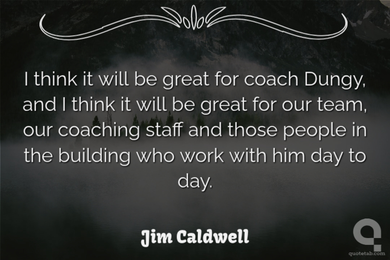 I think it will be great for coach Dungy and I think it will be great for our team, our coaching staff and those people in the building who work with him day to day.