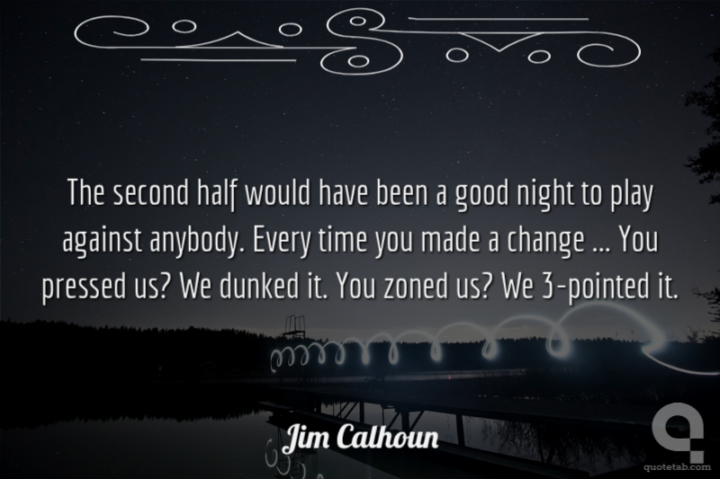 The second half would have been a good night to play against anybody. Every time you made a change ... You pressed us? We dunked it. You zoned us? We 3-pointed it.