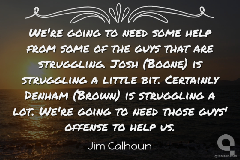 We're going to need some help from some of the guys that are struggling. Josh (Boone) is struggling a little bit. Certainly Denham (Brown) is struggling a lot. We're going to need those guys' offense to help us.
