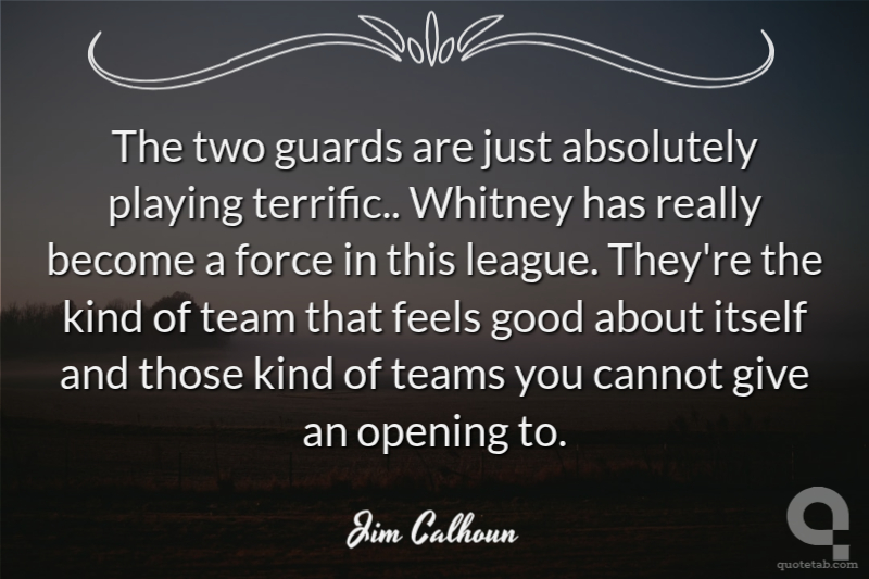 The two guards are just absolutely playing terrific.. Whitney has really become a force in this league. They're the kind of team that feels good about itself and those kind of teams you cannot give an opening to.