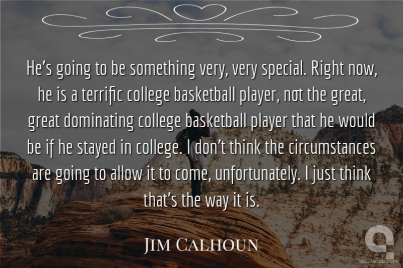 He's going to be something very, very special. Right now, he is a terrific college basketball player, not the great, great dominating college basketball player that he would be if he stayed in college. I don't think the circumstances are going to allow it to come, unfortunately. I just think that's the way it is.