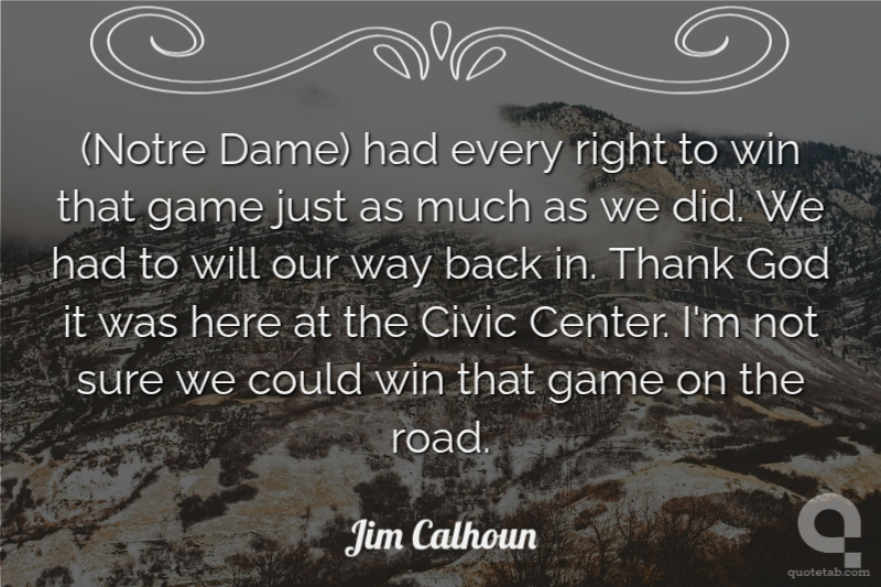 (Notre Dame) had every right to win that game just as much as we did. We had to will our way back in. Thank God it was here at the Civic Center. I'm not sure we could win that game on the road.