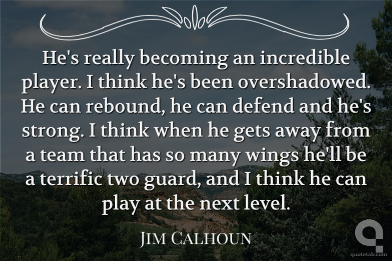 He's really becoming an incredible player. I think he's been overshadowed. He can rebound, he can defend and he's strong. I think when he gets away from a team that has so many wings he'll be a terrific two guard, and I think he can play at the next level.