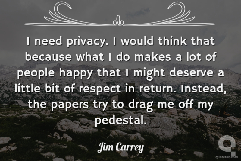 I need privacy. I would think that because what I do makes a lot of people happy that I might deserve a little bit of respect in return. Instead, the papers try to drag me off my pedestal.
