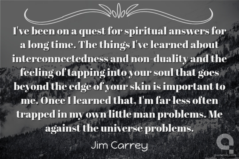 I've been on a quest for spiritual answers for a long time. The things I've learned about interconnectedness and non-duality and the feeling of tapping into your soul that goes beyond the edge of your skin is important to me. Once I learned that, I'm far less often trapped in my own little man problems. Me against the universe problems.