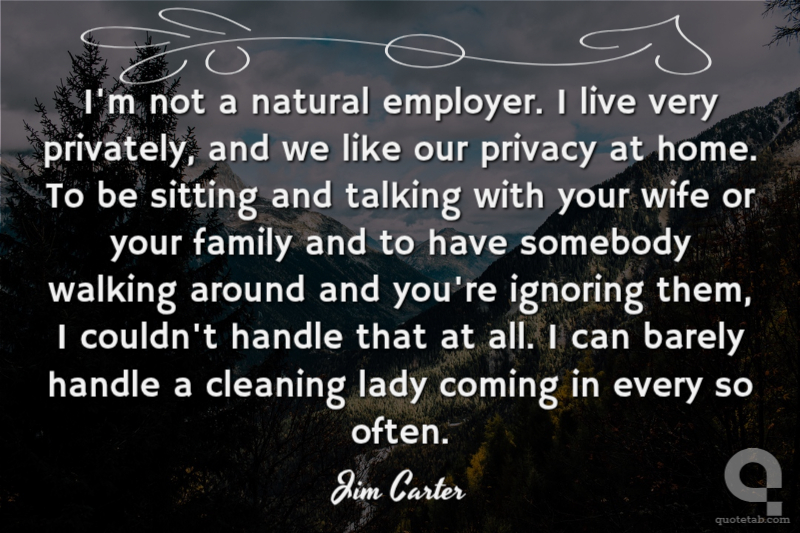 I'm not a natural employer. I live very privately, and we like our privacy at home. To be sitting and talking with your wife or your family and to have somebody walking around and you're ignoring them, I couldn't handle that at all. I can barely handle a cleaning lady coming in every so often.
