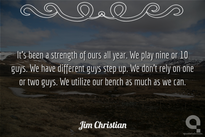 It's been a strength of ours all year. We play nine or 10 guys. We have different guys step up. We don't rely on one or two guys. We utilize our bench as much as we can.
