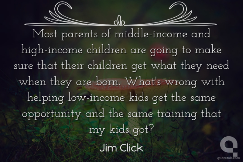 Most parents of middle-income and high-income children are going to make sure that their children get what they need when they are born. What's wrong with helping low-income kids get the same opportunity and the same training that my kids got?