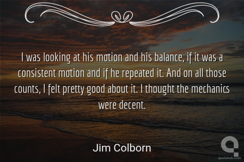 I was looking at his motion and his balance, if it was a consistent motion and if he repeated it. And on all those counts, I felt pretty good about it. I thought the mechanics were decent.