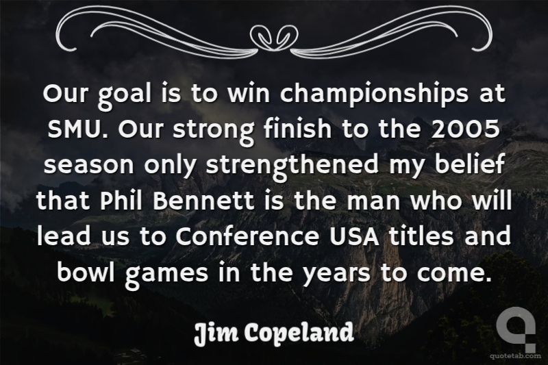 Our goal is to win championships at SMU. Our strong finish to the 2005 season only strengthened my belief that Phil Bennett is the man who will lead us to Conference USA titles and bowl games in the years to come.