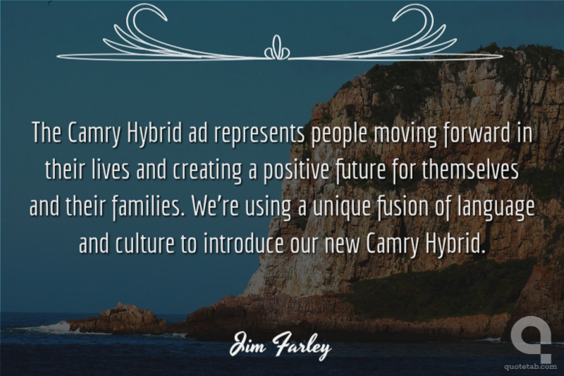 The Camry Hybrid ad represents people moving forward in their lives and creating a positive future for themselves and their families. We're using a unique fusion of language and culture to introduce our new Camry Hybrid.