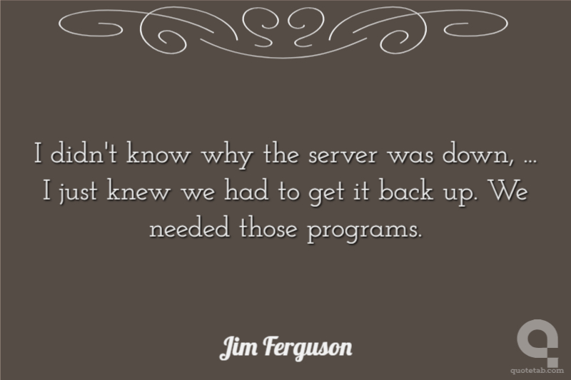 I didn't know why the server was down, ... I just knew we had to get it back up. We needed those programs.