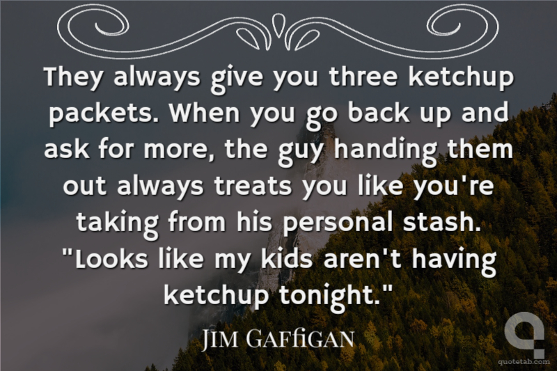 They always give you three ketchup packets. When you go back up and ask for more, the guy handing them out always treats you like you're taking from his personal stash. "Looks like my kids aren't having ketchup tonight."