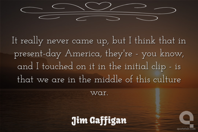 It really never came up, but I think that in present-day America, they're - you know, and I touched on it in the initial clip - is that we are in the middle of this culture war.