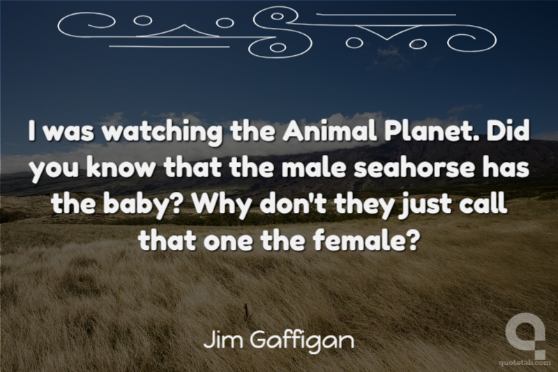 I was watching Animal Planet. Did you know that the male seahorse has the baby? And I was thinking, "Why don't they just call that the female seahorse?" You know it's just some stubborn scientist. "Yeah, that one there's the male seahorse." And his assistant's like, "Uh, Bill, that one's having a baby." ... "The male has the baby. You're fired."