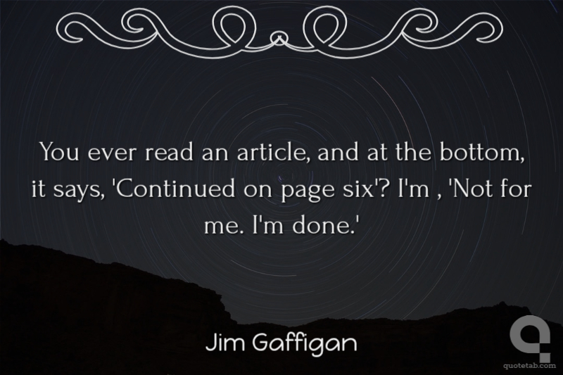 You ever read an article, and at the bottom, it says, 'Continued on page six'? I'm , 'Not for me. I'm done.'