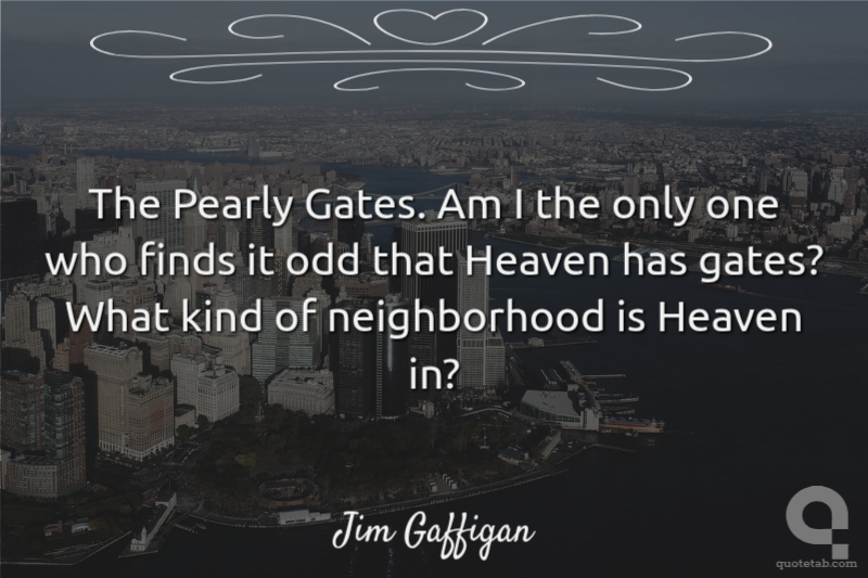 The Pearly Gates. Am I the only one who finds it odd that Heaven has gates? What kind of neighborhood is Heaven in?
