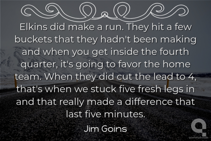 Elkins did make a run. They hit a few buckets that they hadn't been making and when you get inside the fourth quarter, it's going to favor the home team. When they did cut the lead to 4, that's when we stuck five fresh legs in and that really made a difference that last five minutes.