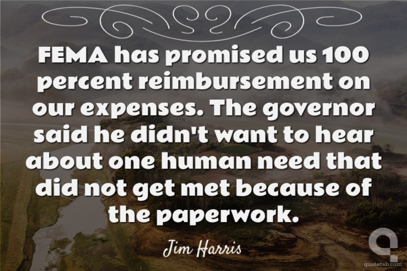 FEMA has promised us 100 percent reimbursement on our expenses. The governor said he didn't want to hear about one human need that did not get met because of the paperwork.