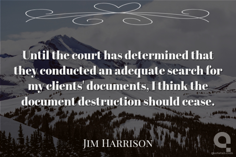 Until the court has determined that they conducted an adequate search for my clients' documents, I think the document destruction should cease.