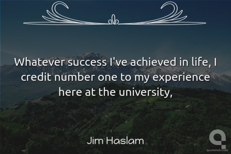 Whatever success I've achieved in life, I credit number one to my experience here at the university,