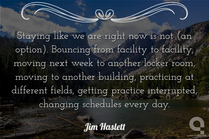 Staying like we are right now is not (an option). Bouncing from facility to facility, moving next week to another locker room, moving to another building, practicing at different fields, getting practice interrupted, changing schedules every day.