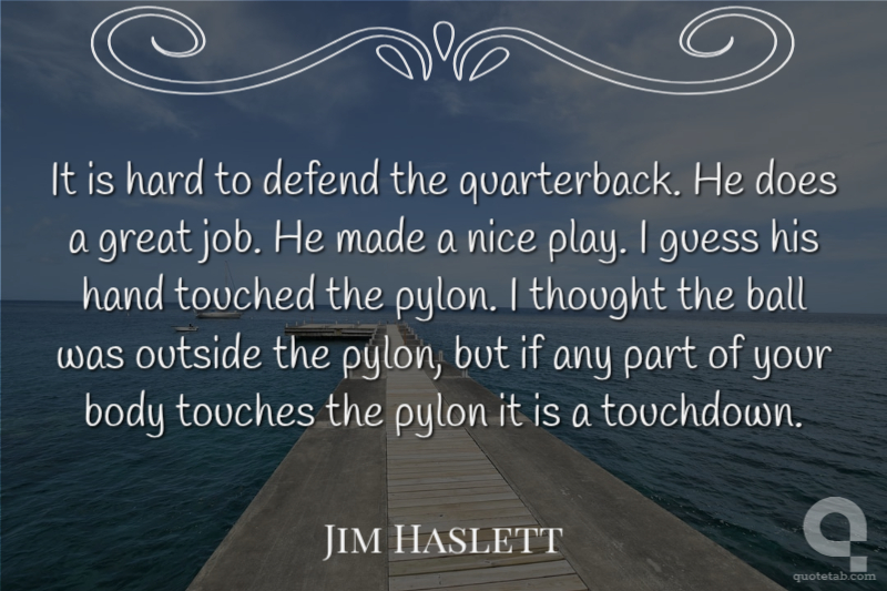 It is hard to defend the quarterback. He does a great job. He made a nice play. I guess his hand touched the pylon. I thought the ball was outside the pylon, but if any part of your body touches the pylon it is a touchdown.
