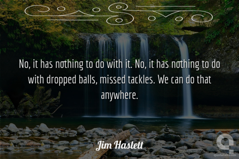 No, it has nothing to do with it. No, it has nothing to do with dropped balls, missed tackles. We can do that anywhere.