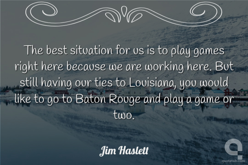 The best situation for us is to play games right here because we are working here. But still having our ties to Louisiana, you would like to go to Baton Rouge and play a game or two.