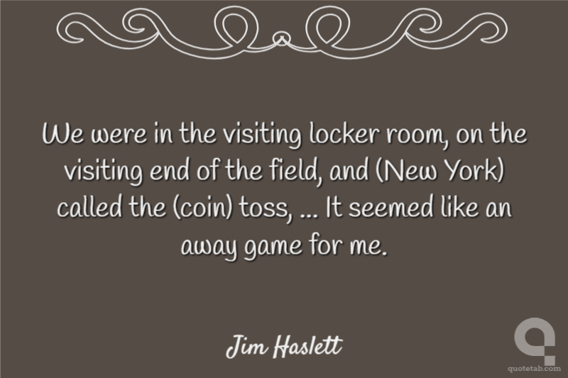 We were in the visiting locker room, on the visiting end of the field, and (New York) called the (coin) toss, ... It seemed like an away game for me.