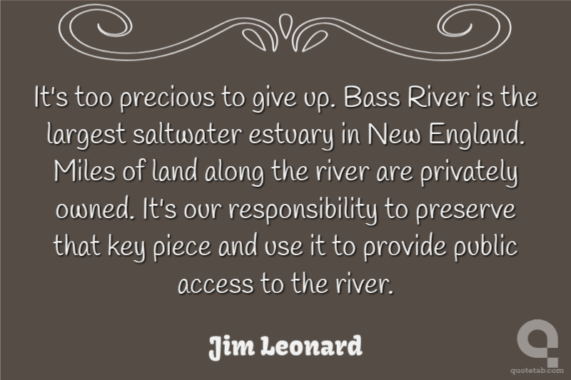 It's too precious to give up. Bass River is the largest saltwater estuary in New England. Miles of land along the river are privately owned. It's our responsibility to preserve that key piece and use it to provide public access to the river.