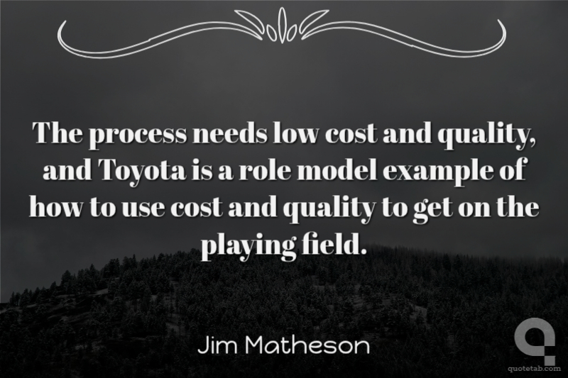 The process needs low cost and quality, and Toyota is a role model example of how to use cost and quality to get on the playing field.