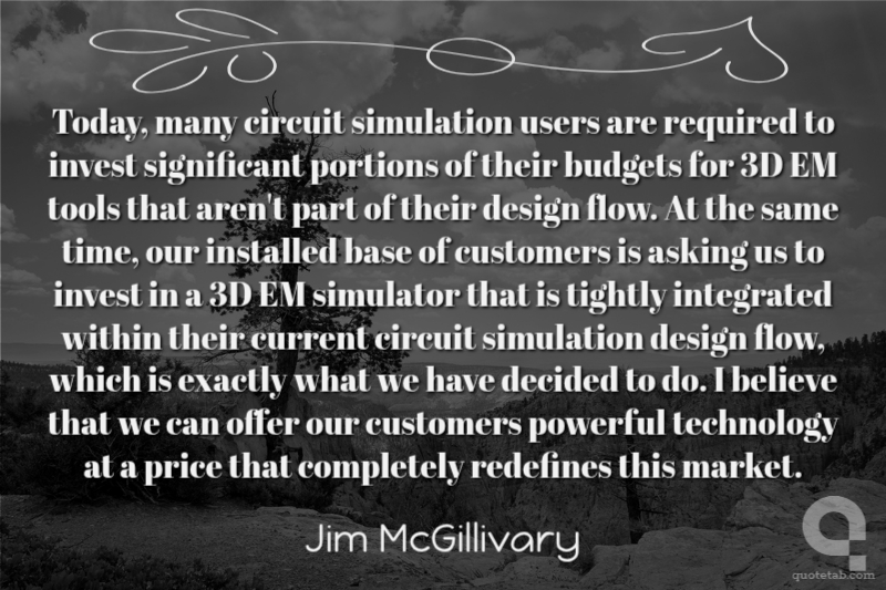 Today, many circuit simulation users are required to invest significant portions of their budgets for 3D EM tools that aren't part of their design flow. At the same time, our installed base of customers is asking us to invest in a 3D EM simulator that is tightly integrated within their current circuit simulation design flow, which is exactly what we have decided to do. I believe that we can offer our customers powerful technology at a price that completely redefines this market.