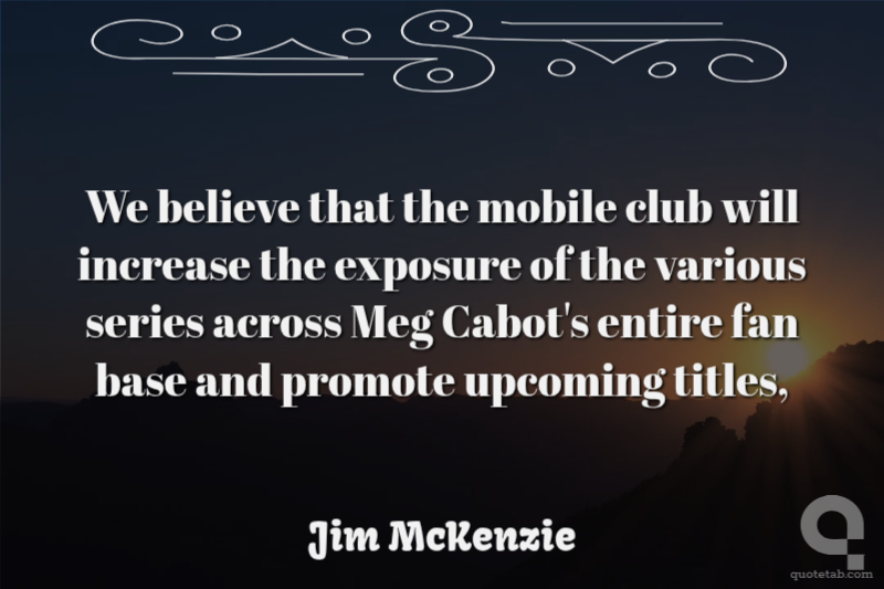 We believe that the mobile club will increase the exposure of the various series across Meg Cabot's entire fan base and promote upcoming titles,