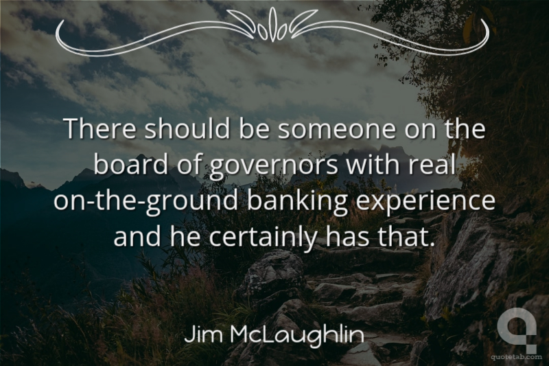 There should be someone on the board of governors with real on-the-ground banking experience and he certainly has that.