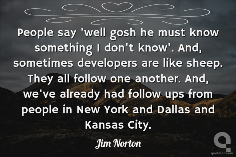 People say 'well gosh he must know something I don't know'. And, sometimes developers are like sheep. They all follow one another. And, we've already had follow ups from people in New York and Dallas and Kansas City.