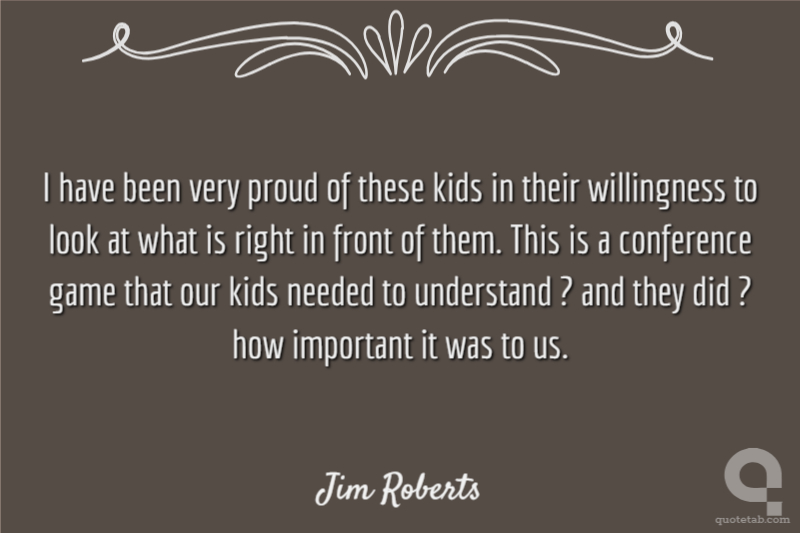 I have been very proud of these kids in their willingness to look at what is right in front of them. This is a conference game that our kids needed to understand ? and they did ? how important it was to us.