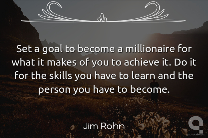 Set a goal to become a millionaire for what it makes of you to achieve it. Do it for the skills you have to learn and the person you have to become.