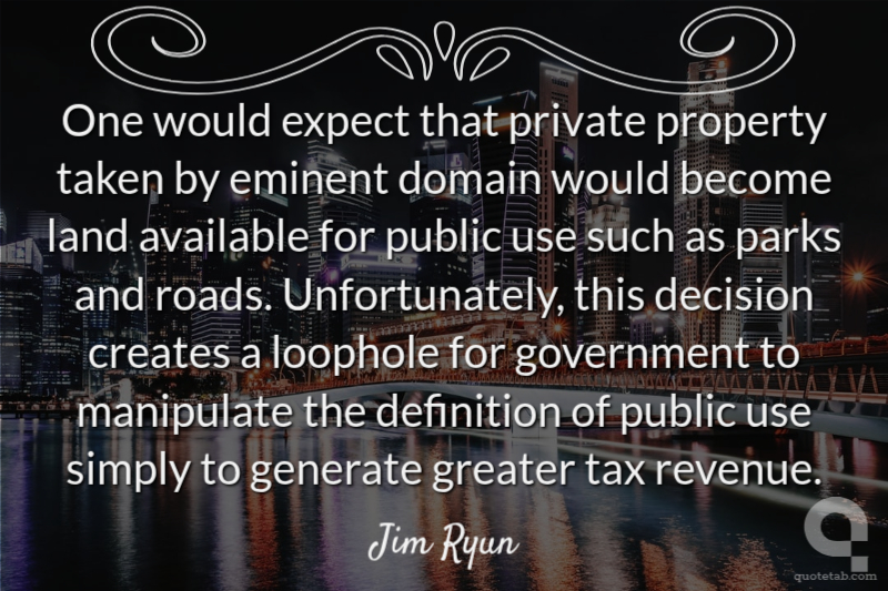 One would expect that private property taken by eminent domain would become land available for public use such as parks and roads. Unfortunately, this decision creates a loophole for government to manipulate the definition of public use simply to generate greater tax revenue.