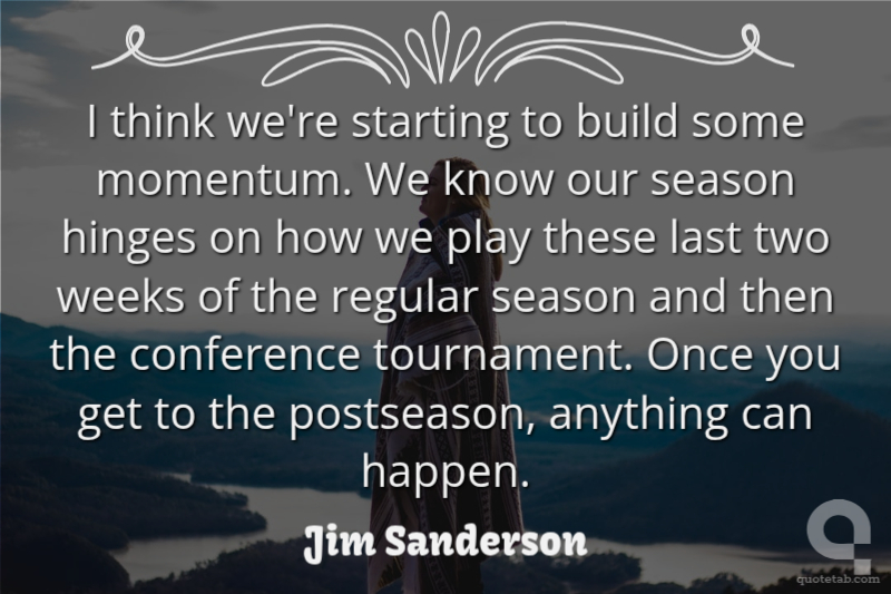 I think we're starting to build some momentum. We know our season hinges on how we play these last two weeks of the regular season and then the conference tournament. Once you get to the postseason, anything can happen.