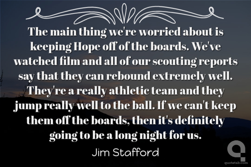 The main thing we're worried about is keeping Hope off of the boards. We've watched film and all of our scouting reports say that they can rebound extremely well. They're a really athletic team and they jump really well to the ball. If we can't keep them off the boards, then it's definitely going to be a long night for us.