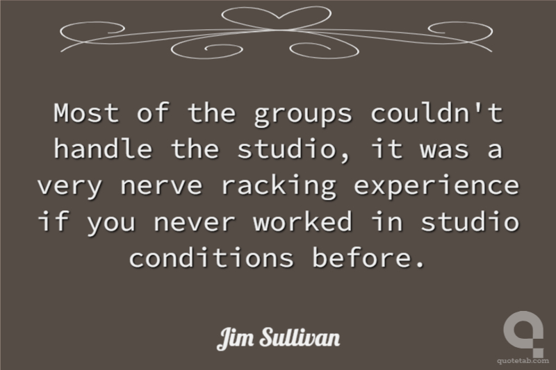 Most of the groups couldn't handle the studio, it was a very nerve racking experience if you never worked in studio conditions before.