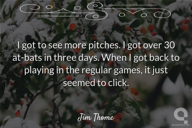 I got to see more pitches. I got over 30 at-bats in three days. When I got back to playing in the regular games, it just seemed to click.