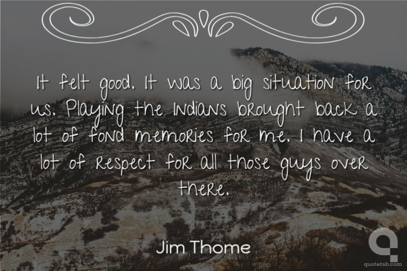 It felt good. It was a big situation for us. Playing the Indians brought back a lot of fond memories for me. I have a lot of respect for all those guys over there.