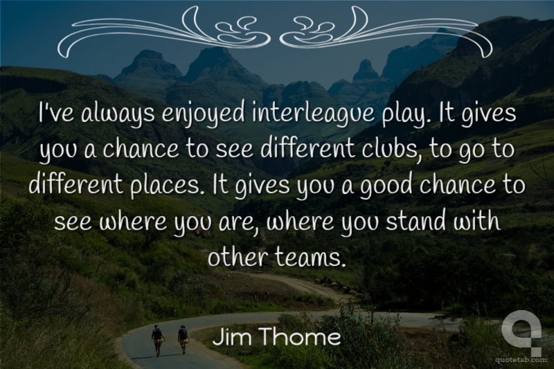 I've always enjoyed interleague play. It gives you a chance to see different clubs, to go to different places. It gives you a good chance to see where you are, where you stand with other teams.