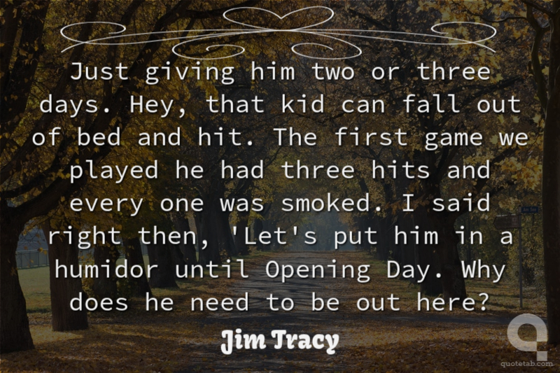 Just giving him two or three days. Hey, that kid can fall out of bed and hit. The first game we played he had three hits and every one was smoked. I said right then, 'Let's put him in a humidor until Opening Day. Why does he need to be out here?