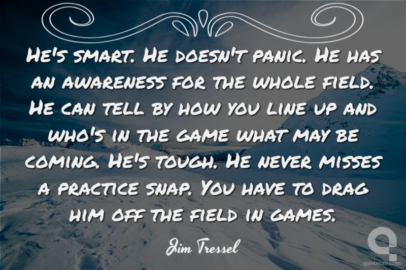 He's smart. He doesn't panic. He has an awareness for the whole field. He can tell by how you line up and who's in the game what may be coming. He's tough. He never misses a practice snap. You have to drag him off the field in games.